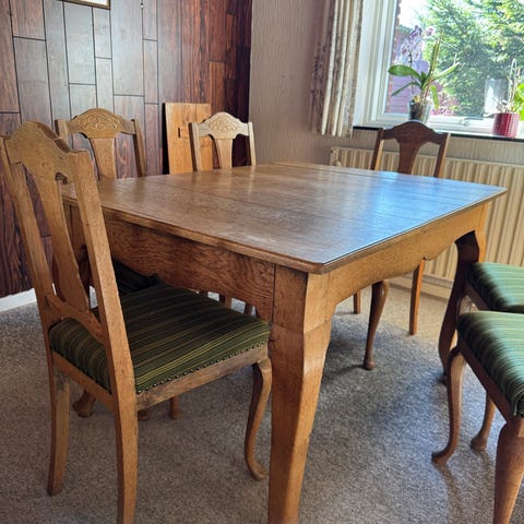 Spisebord i massiv egetræ incl. 6 stole