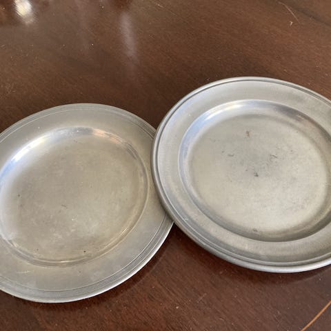 Herligt gammelt tinfad - diam 21.5 cm - højde 2.5 cm & vægt 650 gr.