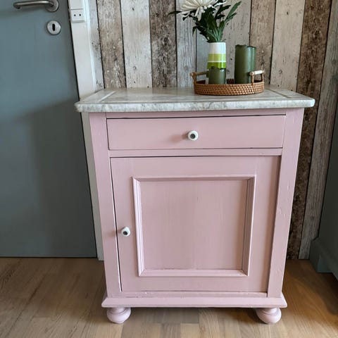 Sød Rosa servante / sengebord / kommode med marmorbordplade.