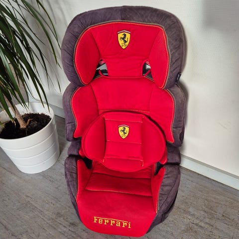 Ferrari sabelt autostol i rød og sort. Autostolen har integreret sele-og sidebeskyttelse. Betrækket er polstret for øget komfort. Velegnet som fremadvendt autostol til børn vægt 9-36 kg. Monteres med bilens sikkerhedssele efter anvisningerne på stolens mærkater. Nakkestøtten kan justeres så den passer til barnets højde. Betrækket er aftageligt.