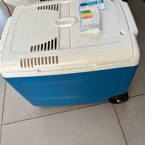 Mobicool køle-/varmeboks i blå med hjul og bærehåndtag. Køleboksen har elektrisk kølefunktion og er udstyret med tilslutningsstik i låget. Indvendigt er der rumopdeling til organisering af indholdet. Velegnet til brug i bil, på camping eller picnic, hvor der er behov for at holde mad og drikke kølige. Den kan også holde mad varmt via en varme funktion.