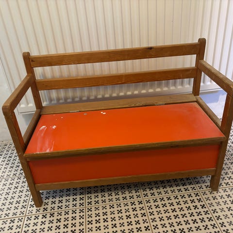 Fin vintage børnebænk med opbevaring flet :)