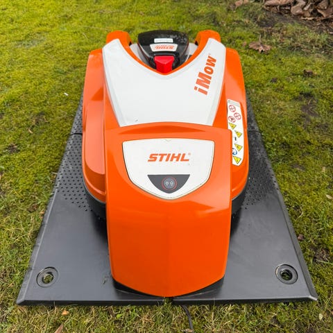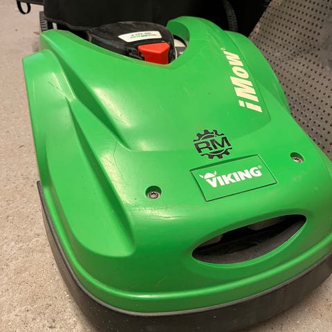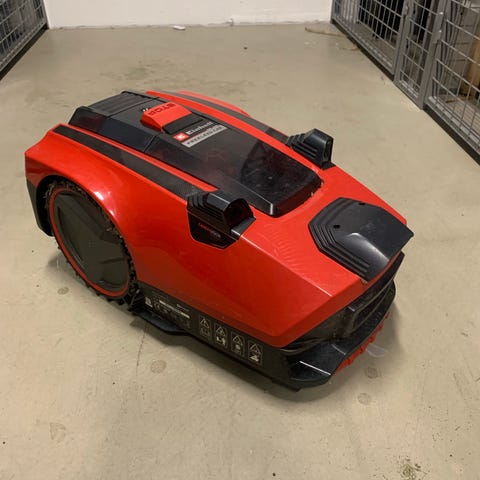Velholdt mask. der ikke fejler noget. Der medfølger 2 ekstra knive,underskjold og tag til ladestation. 200m kanttråd kan evt følge med. Har købt ny model.
