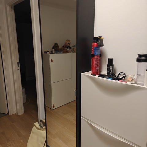Der er monteret andre ben end standard ben til skabet. Det er er muligt at justere højden på benene. Den nuværende højde på skabet er 110cm. Skabet har brugsspor - men er funktionsdygtigt.