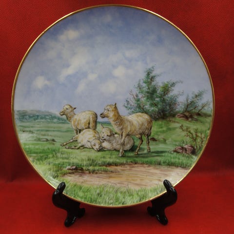 1 Platte med dyr. den har varme farver.