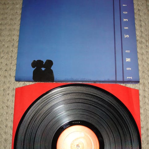 TV-2 Nutidens Unge lp vinyl. Udgivelse på CBS Records med albummet Nutidens Unge. Pladen er i stereo og afspilles ved 33⅓ RPM. Coveret viser blå forside med silhuetmotiv samt bagside med bromotiv. Tracklisten omfatter blandt andet numrene “Rævnen og rønnebærrene”, “ABC”, “Latinerkvarteret”, “De første kærester på månen”, “Popmusikerens vise”, “Ensomhedens gade nr. 9” og “Hovedbanegården”. Velegnet til afspilning på standard pladespiller til 12" lp-vinyler.