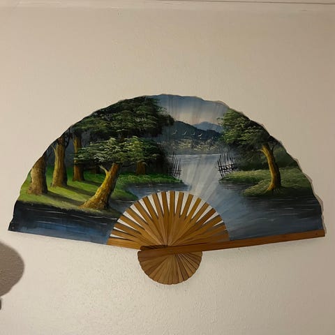 Vægdekoration vifte naturfarvet flet