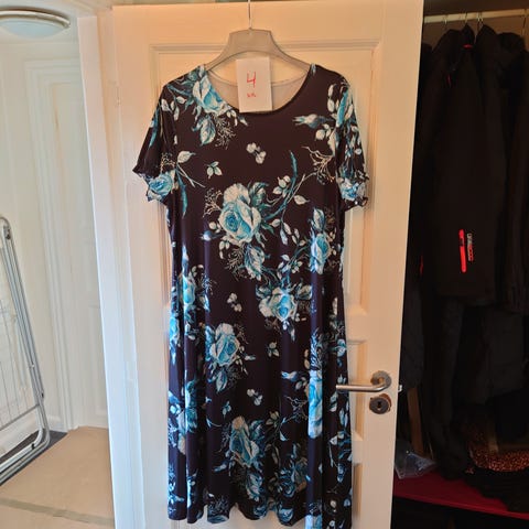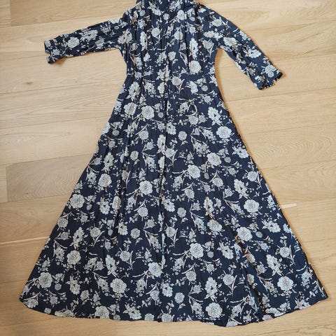 Zara hverdagskjole til kvinder i størrelse L. Kjolen er sort og fremstillet i 100 % polyester. Modellen har lange ærmer med let vidde ved håndleddet, knaplukning foroven og løs pasform med rynkedetaljer forneden. Velegnet som hverdagskjole. Det står str Large. (59-52. Fordi den kan bruges fra str.L -2.xl. den er 114. Cm lang og 150. Cm i omkreds ved brystet og 180. Cm i omkreds ved hoften. En skæring i bunden af kjolen. Sort og i meget blødt stof. Ny. Kun 50 kr