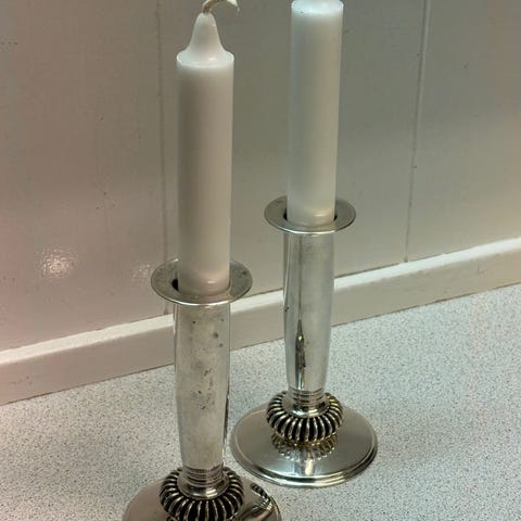 Sæt stemningen med disse elegante antikke lysestager. Fremstillet i dekorativ sølvplet over en base af metal hvilket giver dem et klassisk, vintage look uden at være fuld sølv.