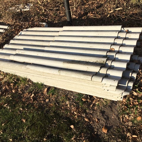 Metal tagplader i rødbrun farve. Pladerne ses monteret på bygning med skråt tag. Velegnet som tagdækning på eksempelvis udhus, lade eller garage, afhængigt af mål og mængde. Materialet fremstår som klassiske metalplader med synlig patinering på overfladen.