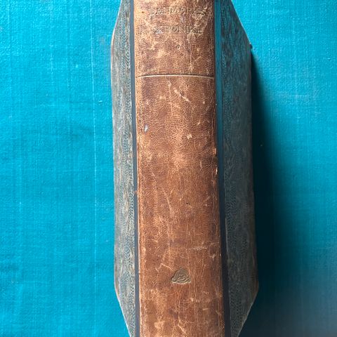 Indbunden, ½ læder, 330 sider 1892 g. Der ses brugsspor og den revnede side, der ses på fotoet.