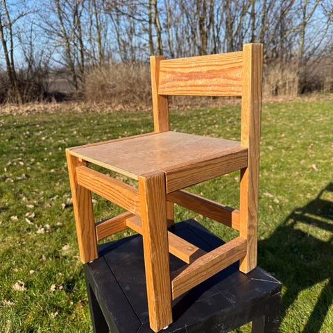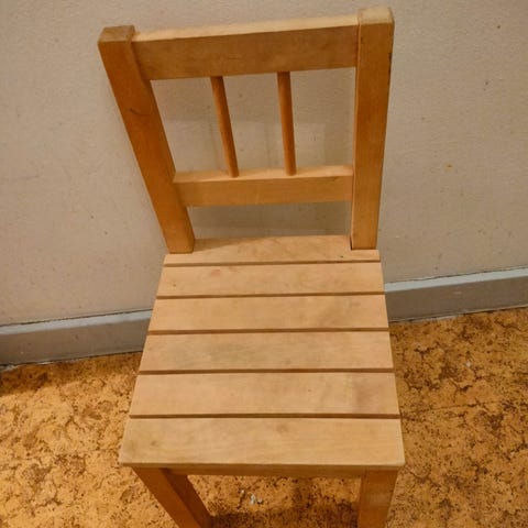 Børnestol træ med rundt hul i ryg