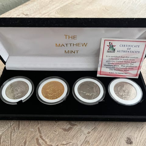 Bemærk at 1/2 oz mønten er gul på forsiden. ( se billede )