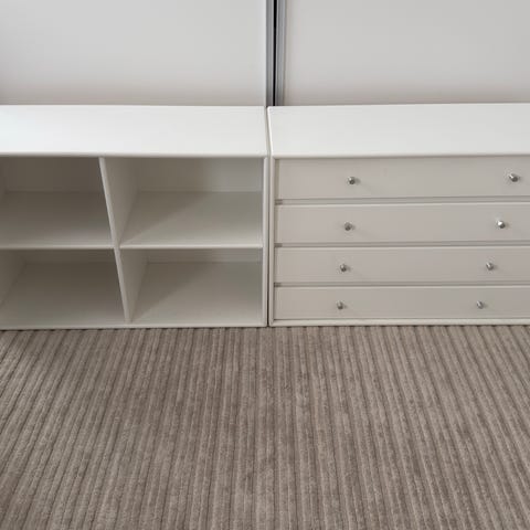 Reolerne kan hænge hver for sig eller fx fungere som et TV møbel under fjernsynet