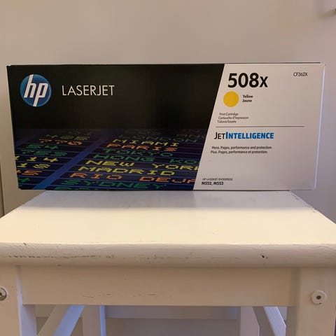Maskinen er bortskaffet, så ny toner i ubrudt emballage er i overskud.
