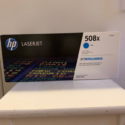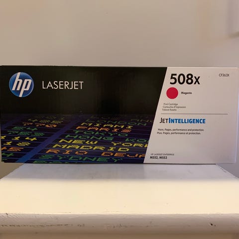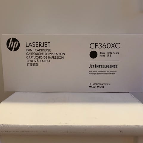 Maskinen er bortskaffet, så ny toner i ubrudt emballage er i overskud.