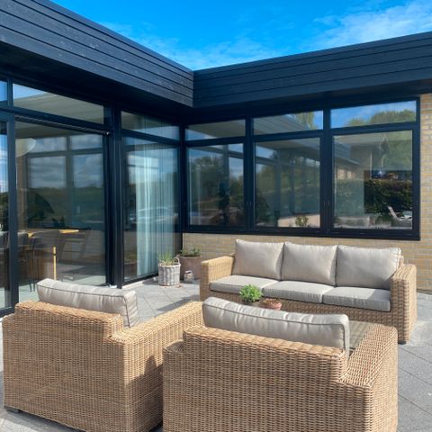Smukkeste loungesæt NYT med rustfrit aluminiumstel . Polyrattan Natur.
