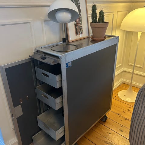 Flyvogn / Serveringsvogn fra Sterling Airways - fungerer i dag som en slags kommode.