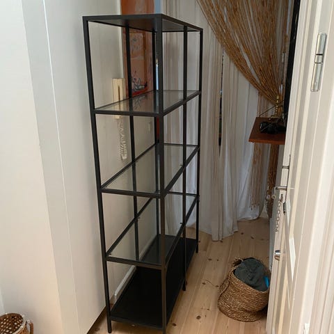 IKEA reol med glas hylder sort metal