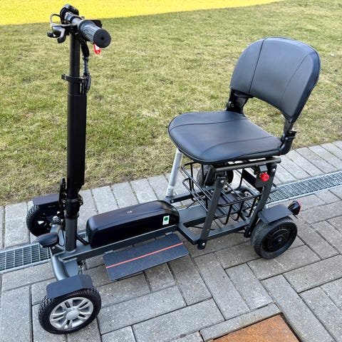 Kan foldes sammen på mindre end et halvt minut. Kan ligge sammenfoldet i bagagerummet på næsten alle biler, og du kan tage den med dig i tog, busser og i flyet.