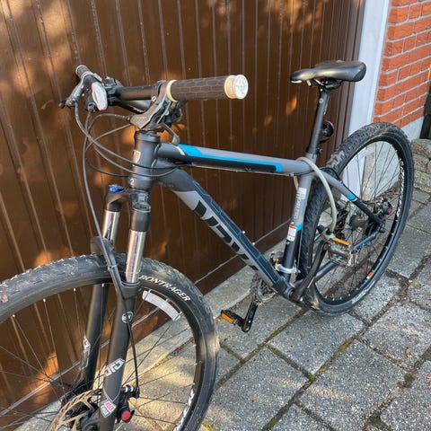 Cyklen har skrammer og er brugt, alt virker, men cyklen er brugt meget.