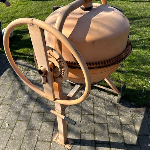 Betonblander på stativ i orange farve. Den er brugt, men fungerer fint. Monteret på metalstativ med to hjul for nemmere flytning.