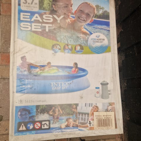 Intex Easy Set pool i rund model med diameter på ca. 4,6 meter. Poolen er blå og er beregnet til udendørs brug i haven. Overkanten pustes op, hvorefter poolen rejser sig, når den fyldes med vand. Velegnet til sommerbadning for både børn og voksne. Leveres i original emballage som vist på billedet.