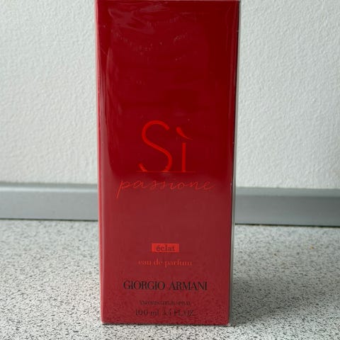 5) Giorgio Armani Sì Passione Red Musk Eau de Parfum 100 ml ! Ny, uåbnet, ægte og kommer i en tester æske! OBS: Parfumen er mærket “tester”, men ikke brugt! ! Se billede nr. 7 og 8 !