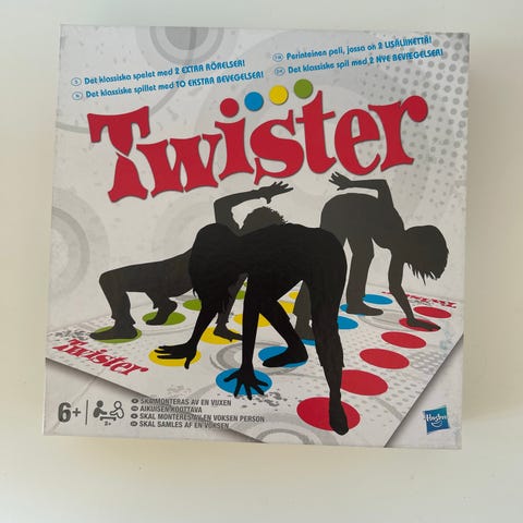 Hasbro Blindfolded Twister brætspil. Spillet er en variant af det klassiske Twister, hvor spillerne har bind for øjnene og skal finde de rigtige farvede felter på spillemåtten ved hjælp af berøring. Indeholder spillemåtte, øjenbind og drejeskive. Velegnet til flere spillere fra ca. 8 år og opefter.