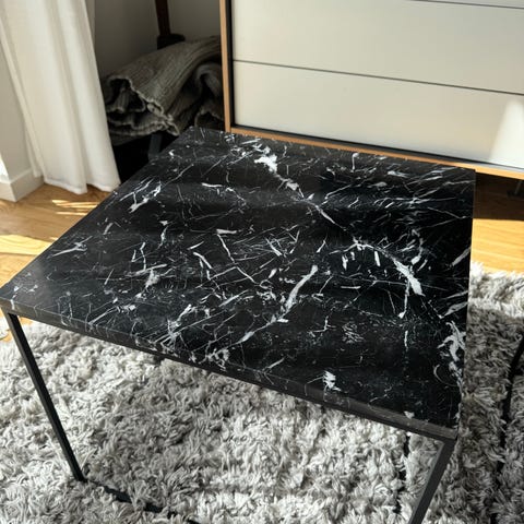 Sælger 2 stk. Square sofaborde fra ILVA med bordplade i hvid marmor og stel i sort lakeret metal. Et klassisk og tidløst look der passer til mange indretningsstile.