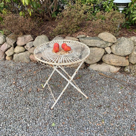 Kerteminde nonwood cafébord i rundt design med en diameter på ca. 80 cm og højde på ca. 73 cm. Bordpladen er i nonwood i sort nuance, og stellet er i metal, hvidt.
