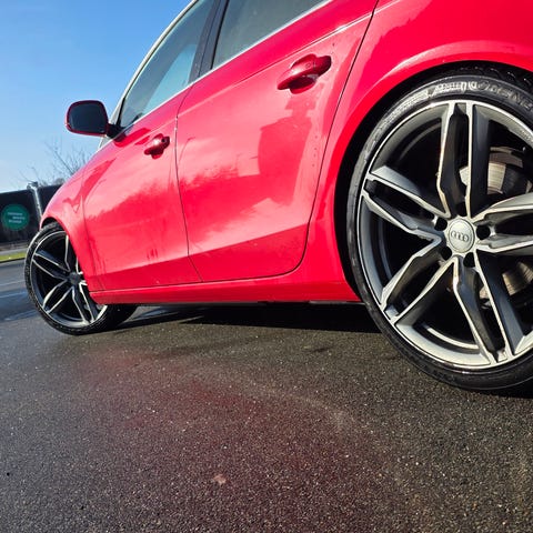 Org. Audi fælge, med en del brugsspor "kantkys" Yokohama dæk