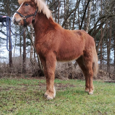 Fengur kan ikke så meget endnu, men han kan trækkes med, stå bundet, strigles, stå på boks, longere i det små, løfte hove og står pænt ved smed.
