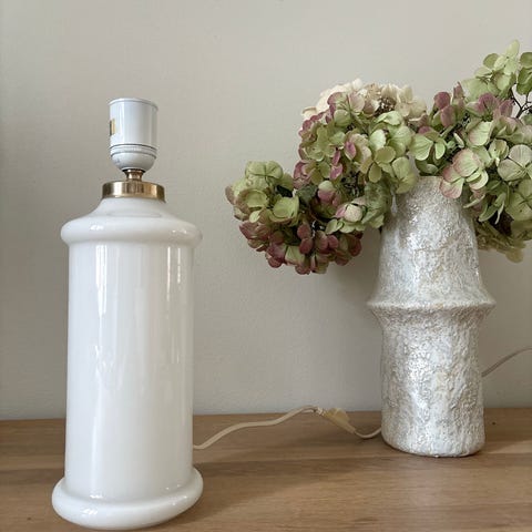 Bordlampe med rund glas skærm i messinglook