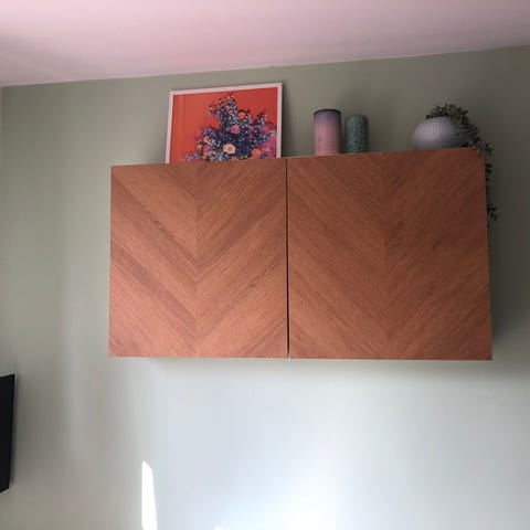 Praktiske vægskabe med flytbare hylder og låger. Kan males. Fin stand. Pris er for 2 stk.
