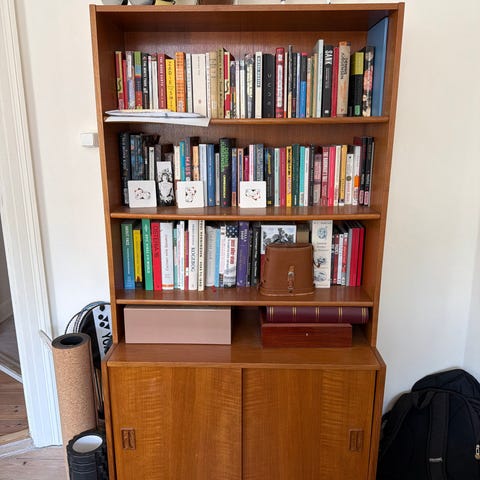 Gammel teak reol med udtræks skrivebord