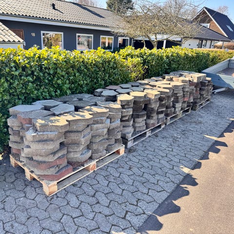 Diverse fliser af beton gives væk.