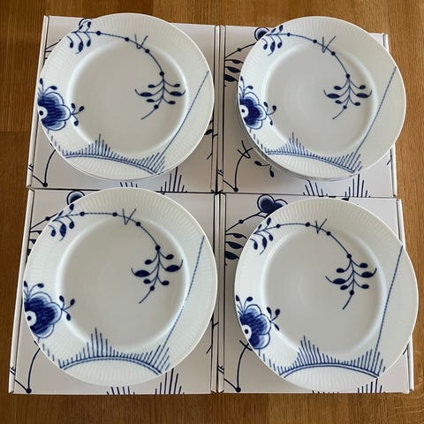 8 x blå mega coupé frokosttallerkener 23 cm: 320 kr. stykket.