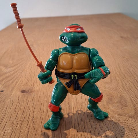 Michelangelo og Donatello køleskabsmagneter fra Mirage Studios Teenage Mutant Ninja Turtles. Udgivet af Bullyland i 1990. Desværre er en af Michelangelos nunchucks knækket og Donatello mangler sin stav. Sælges samlet. Se også mine andre annoncer for andet retro legetøj.