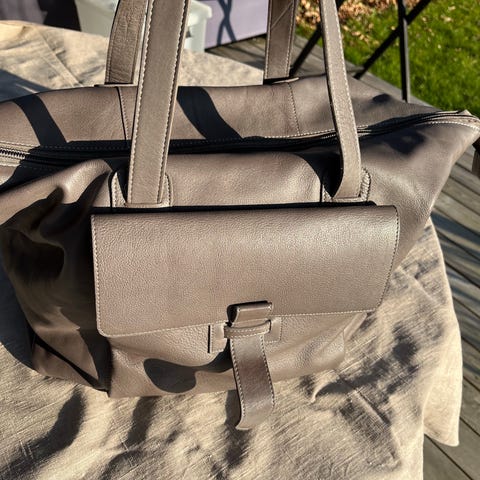 Hanke og bærestrop udvendig samt “skåneknapper” i bunden.