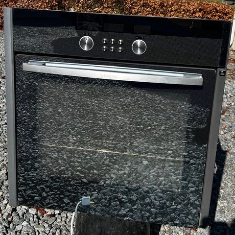 Siemens HB560.80S indbygningsovn i sort. Ovnen er beregnet til indbygning i køkkenmodul. Fronten har betjeningsknapper og greb i metal samt glaslåge. Der medfølger brugsanvisning til modellen, som beskriver funktioner og brug.