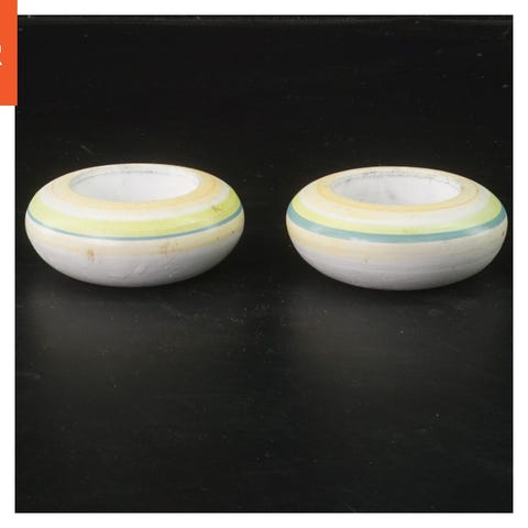 Stribet rund lysestage i keramik