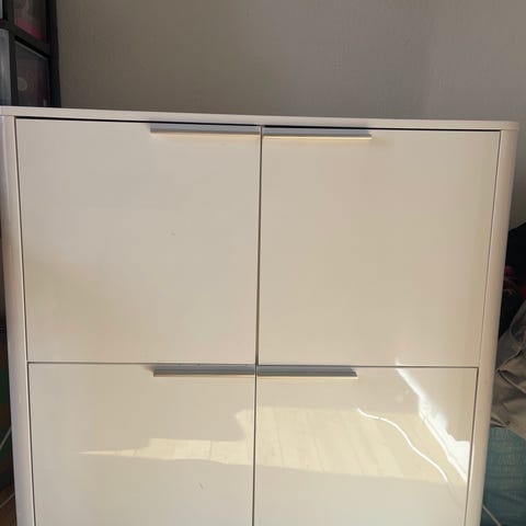 Stort hvidt skab med trådkurve – skal væk hurtigt