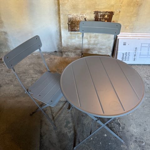 IKEA SUNDSÖ sæt som inkluderer 1x SUNDSÖ bord og 2x SUNDSÖ stole i farven grå.