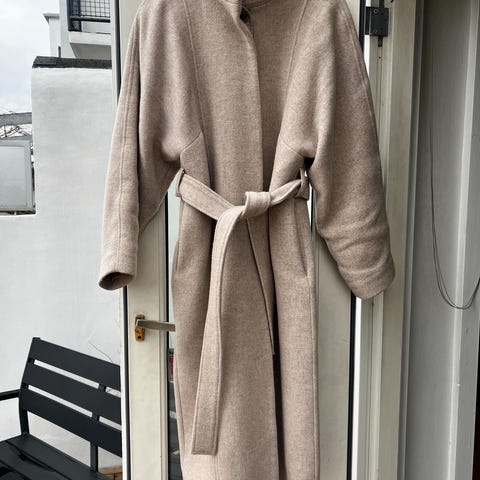 Easy Comfort frakke til kvinder i str. 42. Frakken er beige og fremstillet i uld. Klassisk model med reverskrave, knaplukning foran og sidelommer. Velegnet som yderjakke i køligere vejr.