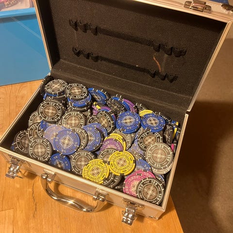 jetoner, voksen, andet spil, 200 jetoner i 4 forskellige farver + 1 Dealer jeton. Sælges for 99 kr. Sender gerne.IKKE MED FIKS FÆRDIG Porto oveni