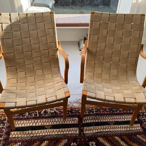 Smuk lænestol med designet af Bruno Mathsson i 1978. Mina lænestolen er en sand designklassiker, som vil pryde i hjemmet, generation efter generation. Stolens konstruktion er helt unik, idet den er fremstillet af dampbøjede træstykker og samlet af tynde lameller. Dette bidrager til stolens lette og elegante udtryk. Samtidigt er stolen yderst behagelig og ergonomisk. Her kan du tage et velfortjent hvil efter en lang dag, og nyde hvordan æstetik og komfort, på skønneste vis, går op i en højere enhed. Uanset om stolen placeres ved siden af sofaen i stuen, i hjørnet eller soveværelset, vil den tilføje en skøn og tidløs detalje til indretningen.