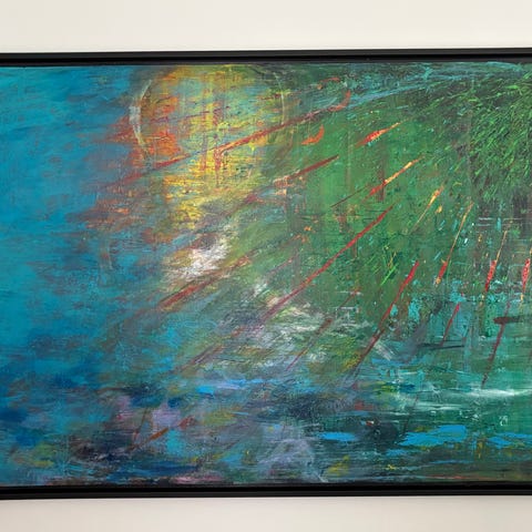 Stort akryl maleri med lys