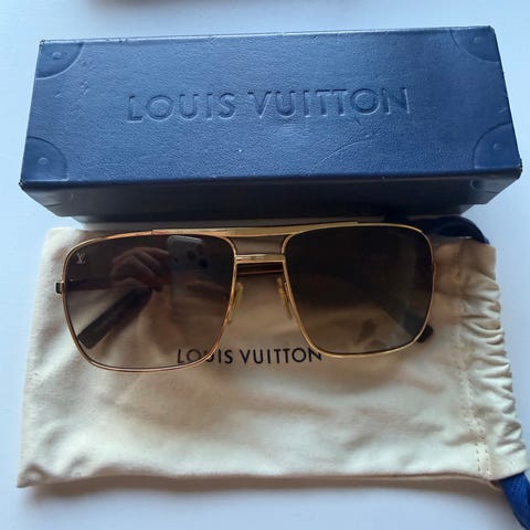 Der følger naturligvis Louis Vuitton brille posen med og jeg har kvitteringen på dem.