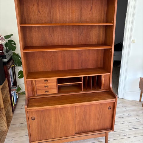 Er du på udkig efter det perfekte møbel til din bogsamling eller dit hjemmekontor? Jeg sælger denne smukke og funktionelle "Bornholmerreol", designet af Johannes Sorth for Bornholms Møbelfabrik i 1960’erne.